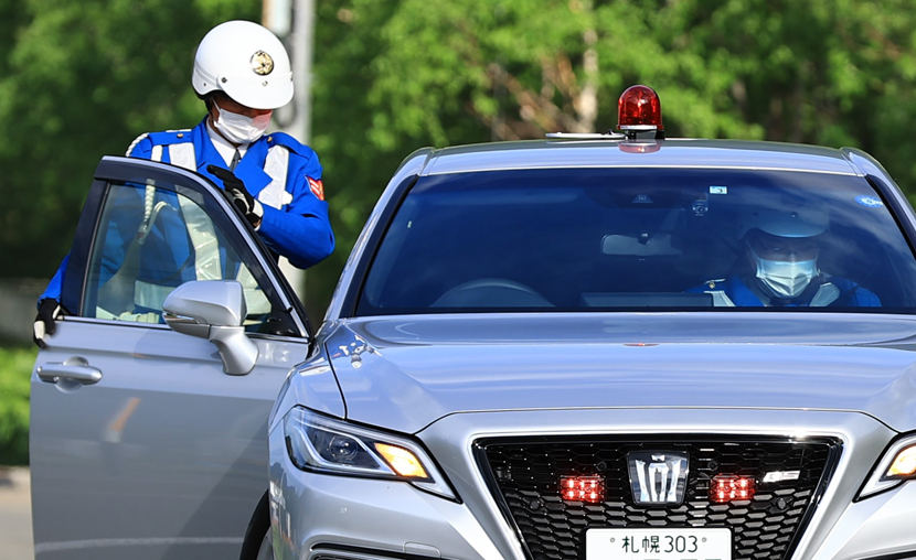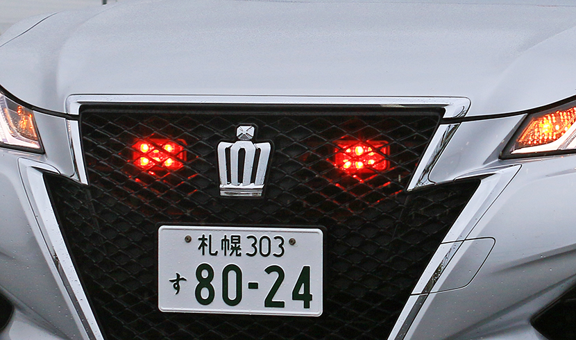 赤色回転灯、前面警光灯など交通取締り用覆面パトカーに共通する特徴を紹介