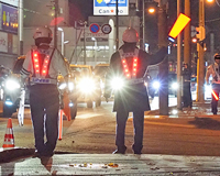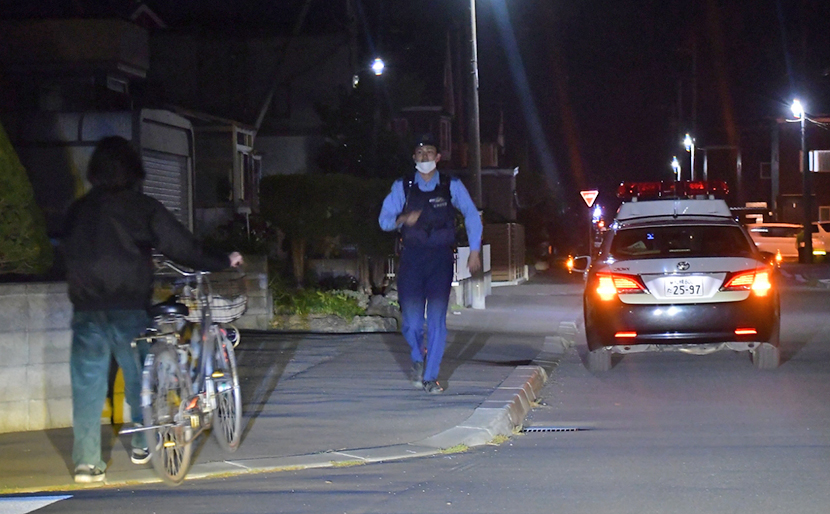 警官が自転車を押す歩行者に声掛け。刃物を持って下半身を露出している