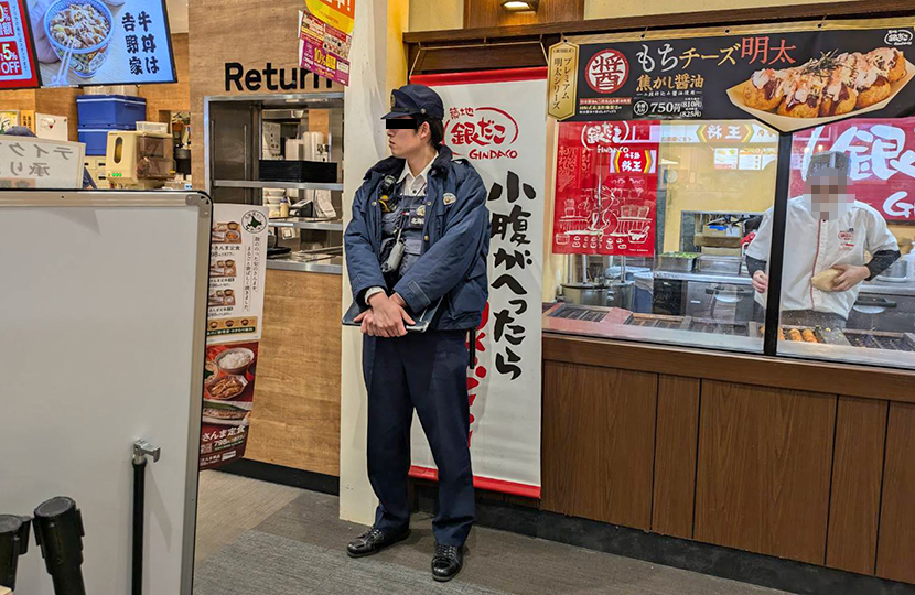 たたずむ警官。これはアメリカだと警官が制服姿で食事をしに来ても