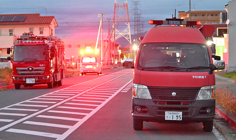 元総社町。「民家のエアコン室外機から火が見える」と目撃者から