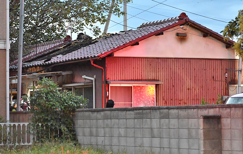こちらが火元となった家。半焼状態との事で、屋根が一部黒く焦げている