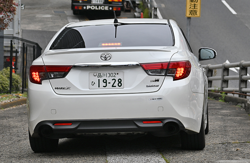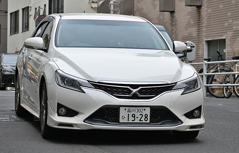 130系マークX交取覆面。ナンバーは「品川302 ひ 19-28」