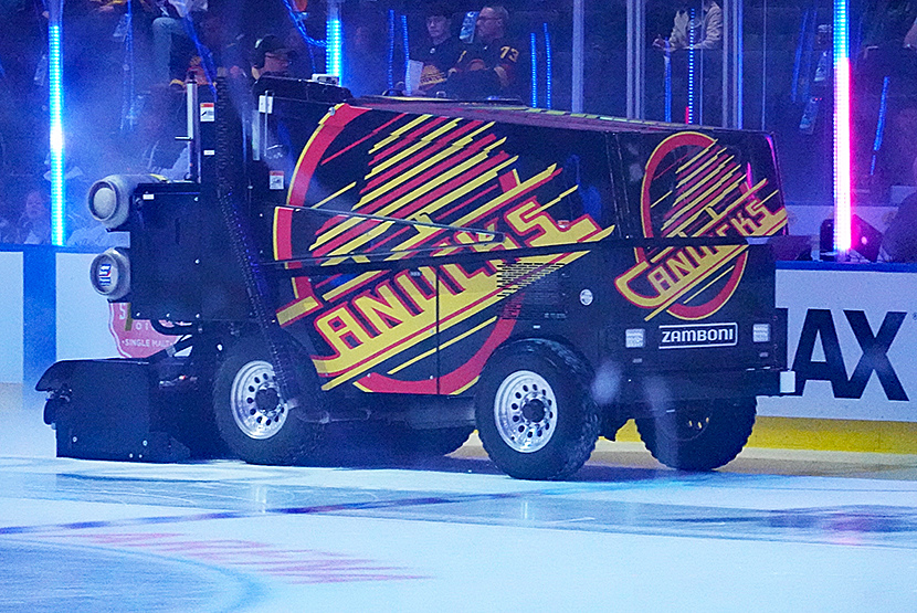 試合の合間にはリンク整備の為の専用車両が登場。車体前部には