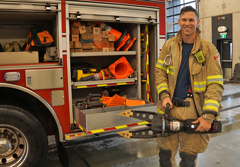 スプレッダーを手に笑顔を見せてくれる隊員。優しい世界。