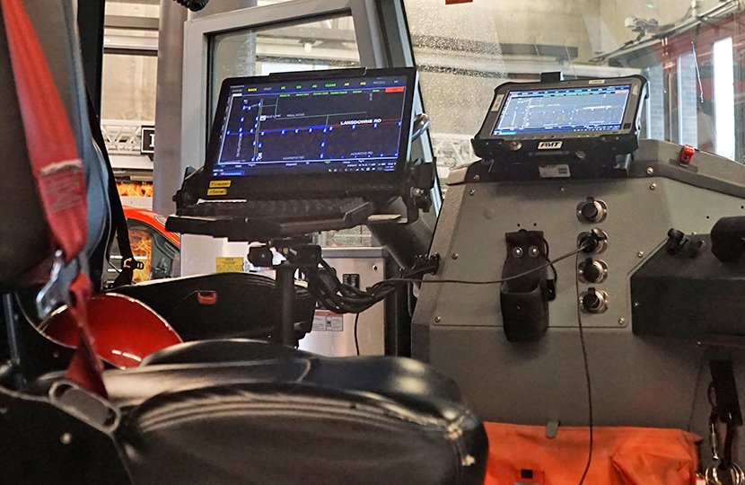 助手席。各種情報を表示する端末が並ぶ。いいねぇ。