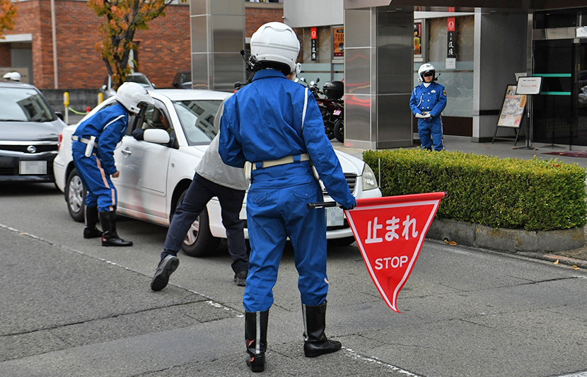 日中に行う検問という事で、マスコミ向けの啓発活動という色合い。