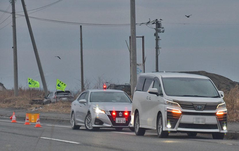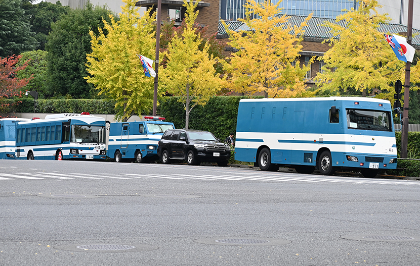 前面警光灯が点灯しているのが判る。これは総理大臣本人が乗車中で