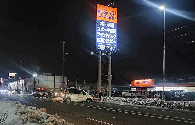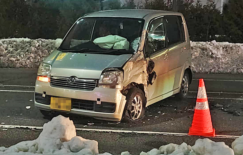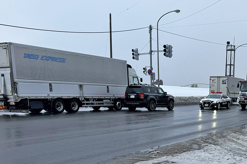 車両2台による事故を受けての臨場。車道で斜めに頓挫しているのが