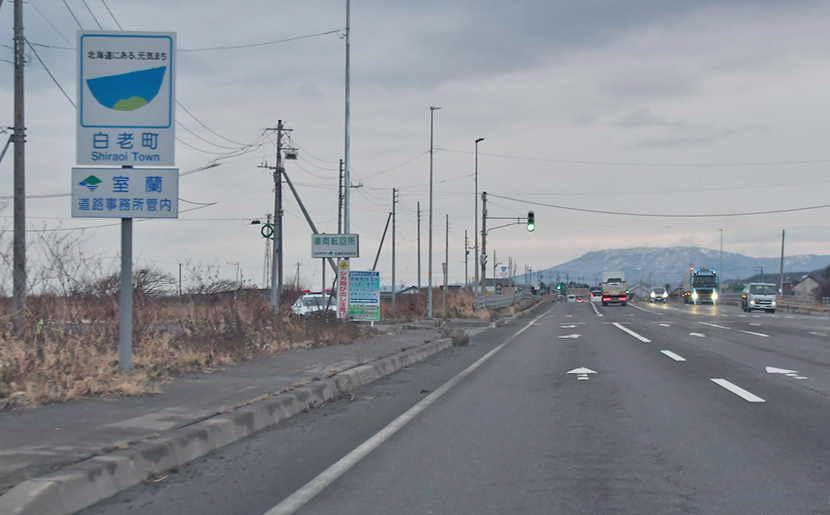 終わっている。現場は白老郡白老町社台 国道36号。同エリアはこの