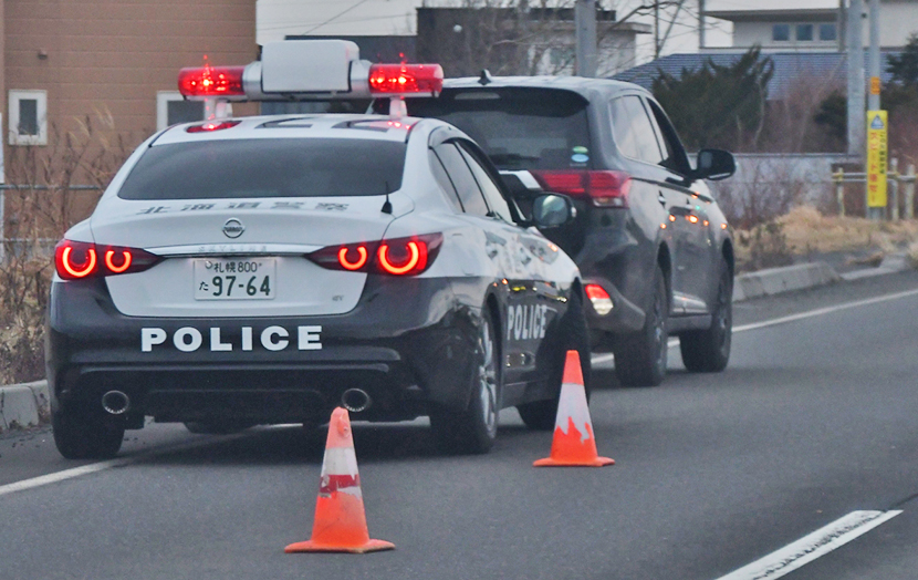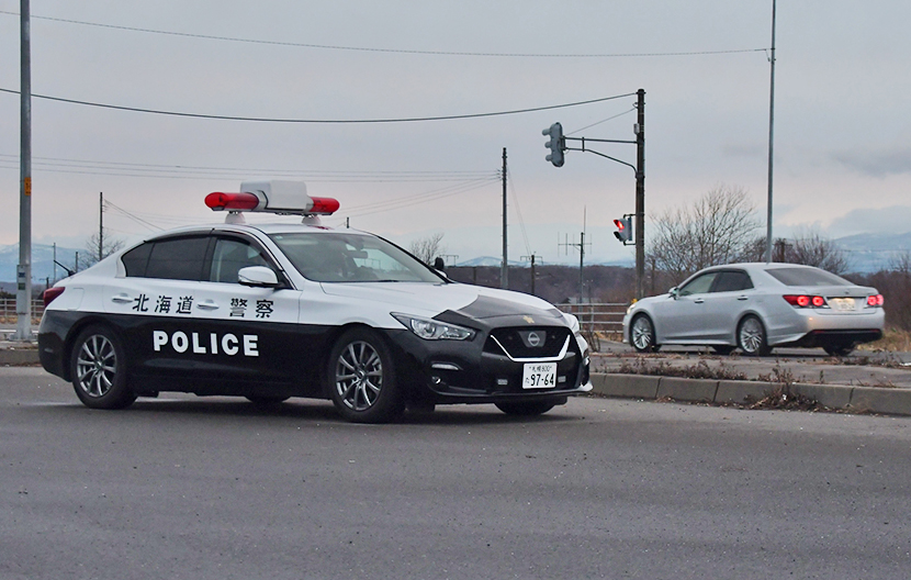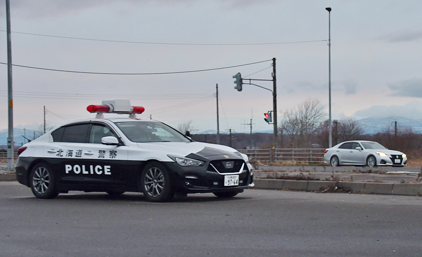 待ち構えるのは札幌交機所属V37スカイラインレーダーパンダ。