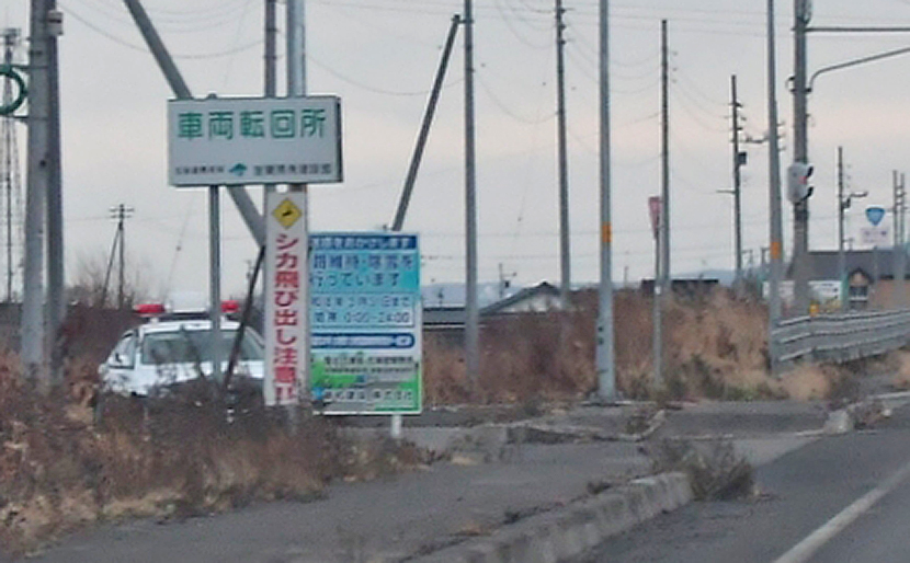 居る。「シカ飛び出し注意!!」の看板がイイ味を出している。シカの他に