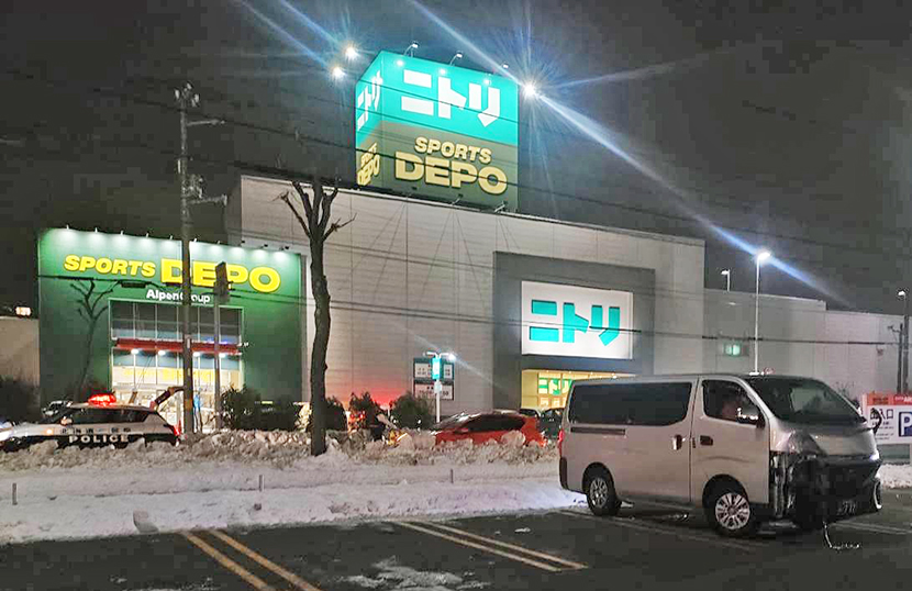 もう1台の当事車は付近の店舗駐車場に。どちらがA当・B当かは不明だが、