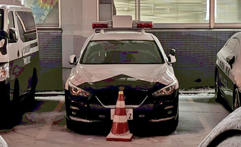 同署所属パトカー駐車スペースではない場所にもパトカーが。