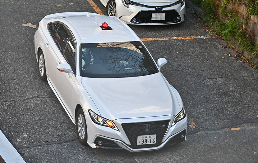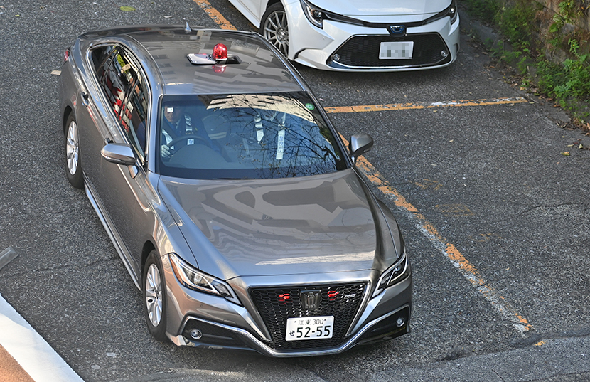 手前左は12代目カローラ捜査用覆面。右は130系マークX捜査用覆面。