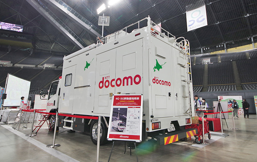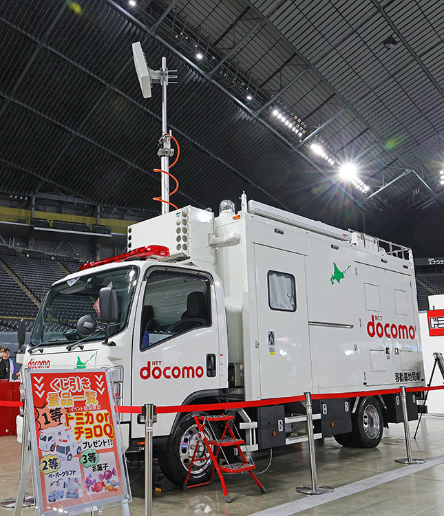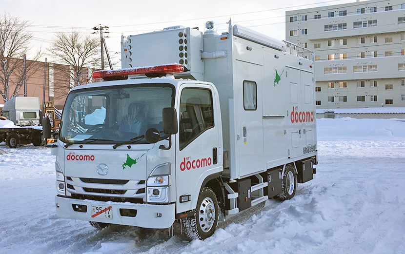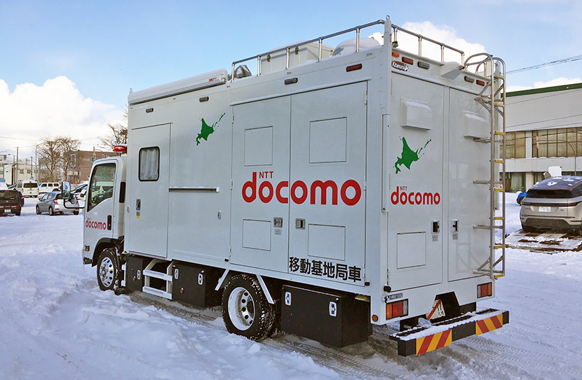 NTTドコモ北海道 北海道支社所属の4G・5G移動基地局車。災害発生時の