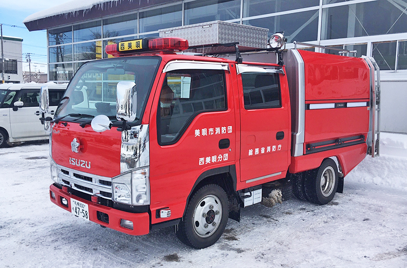 新規登録車だろうか。美唄市消防団、西美唄分団のマーキングが