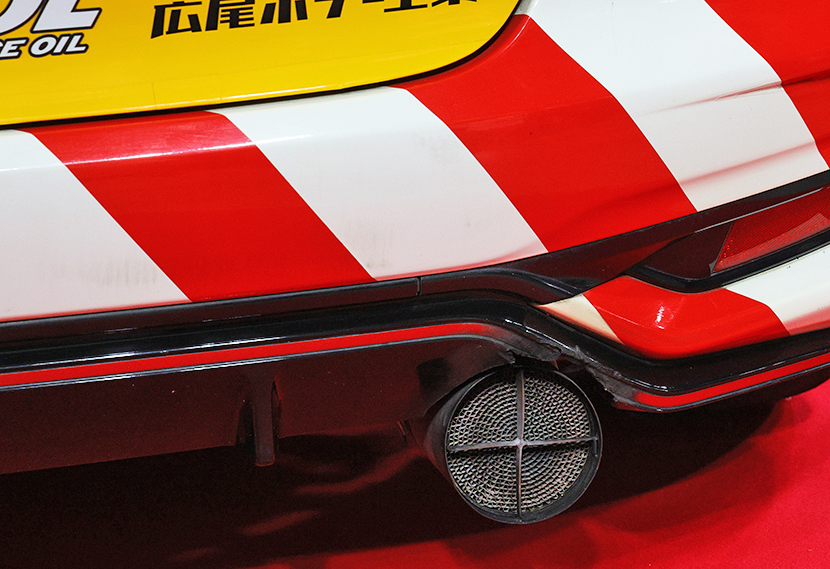 装着されている。一般車にも触媒は装着されているが、排気温度が