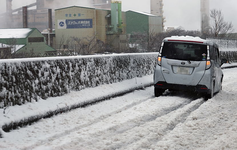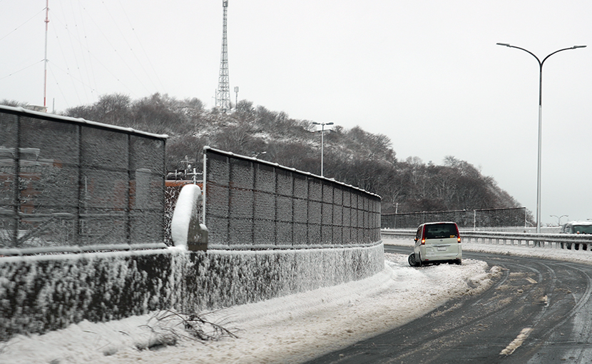 時折雨が降る状況。街宣車からの音量を測定する為の集音マイクには