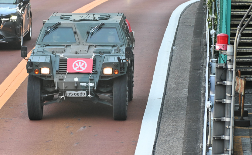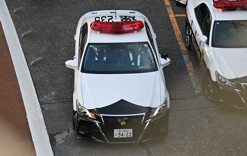 210系クラウンパンダ。高速隊所属である事を示す対空表示の「速」