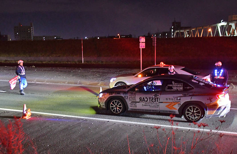 を行っていた際にトラックに追突されたという。昇降式赤色散光灯が