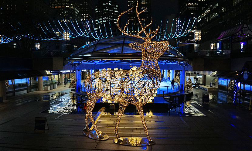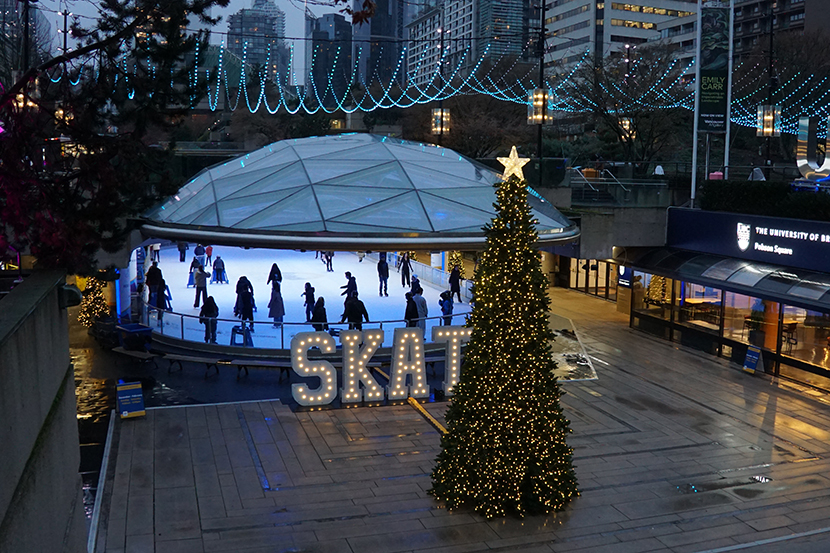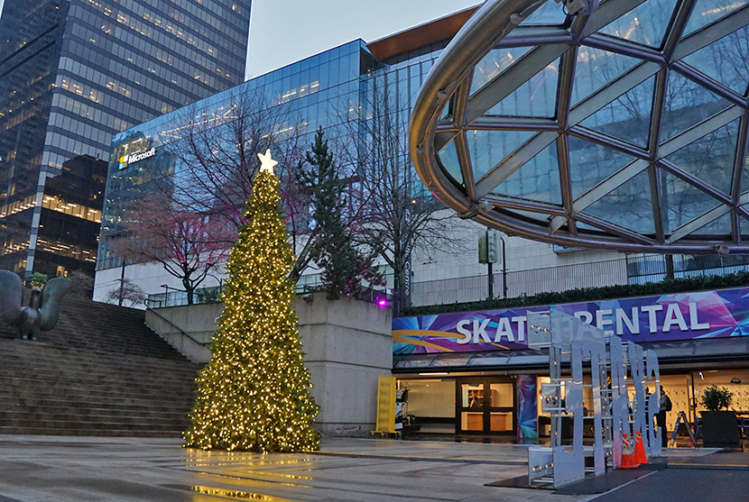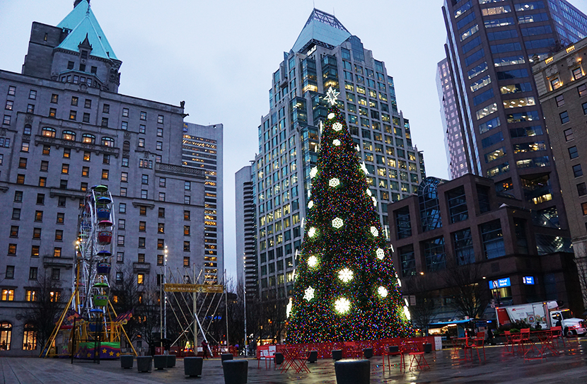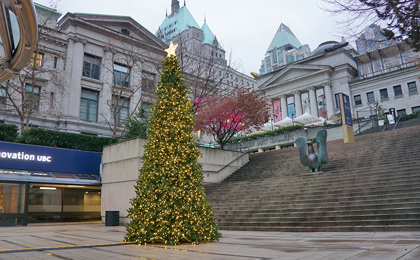 バンクーバー美術館北側広場。この巨大ツリーは毎年設置される風物詩で、