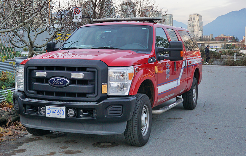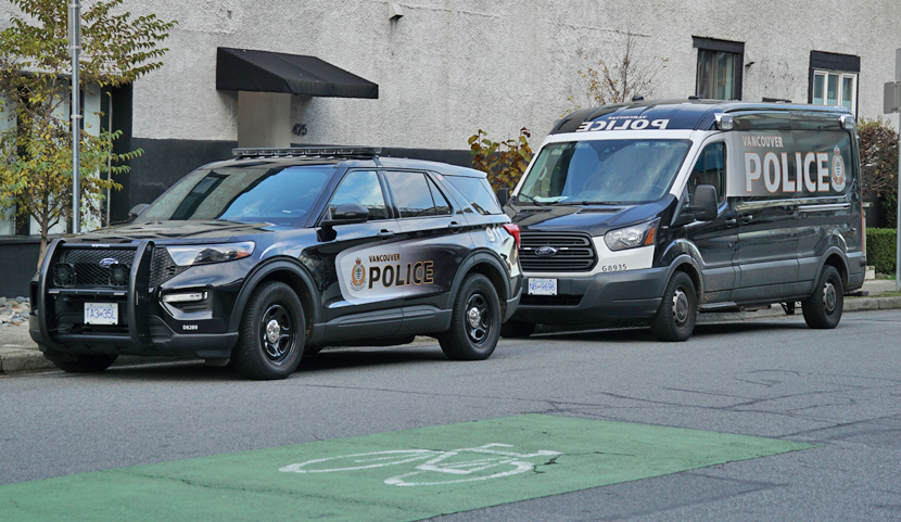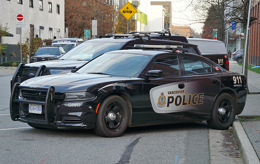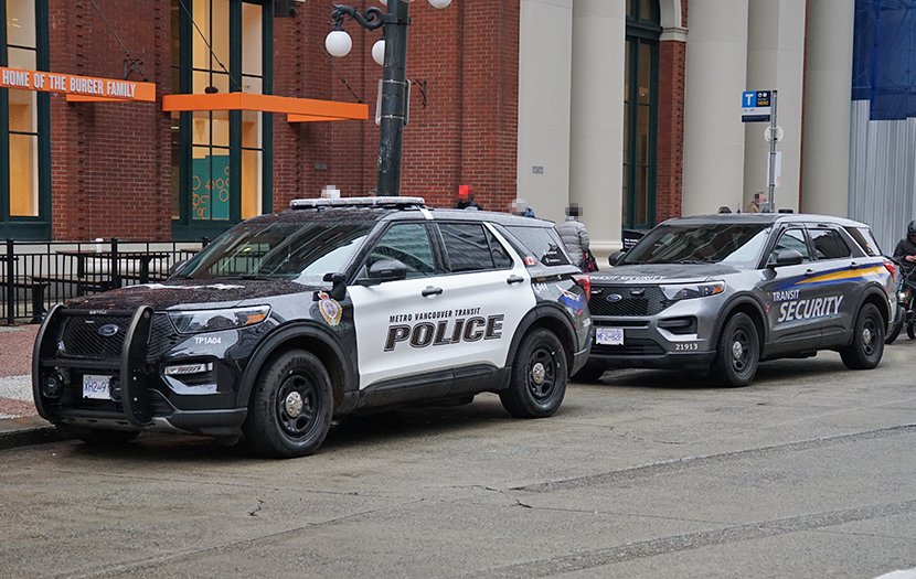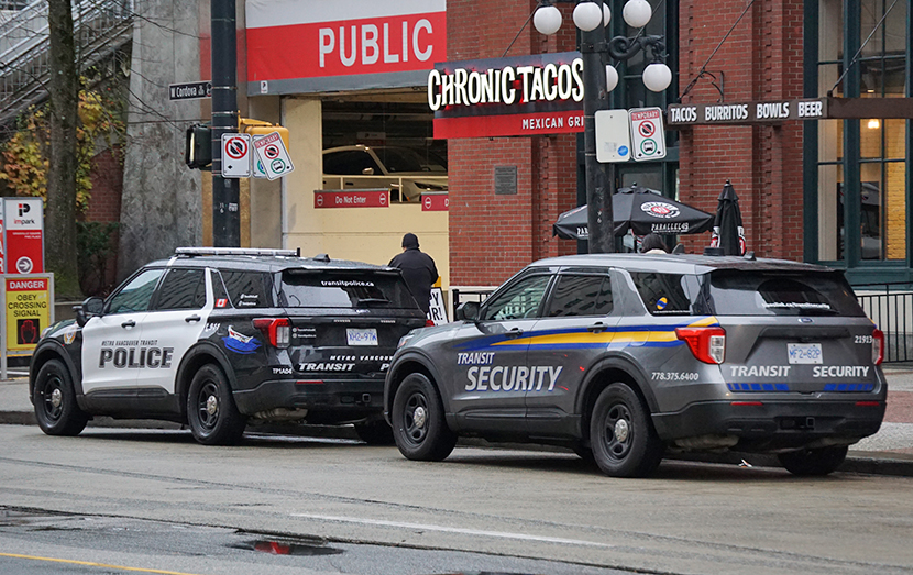 手前はバンクーバー警察、後方は警備会社の所属だろうか。