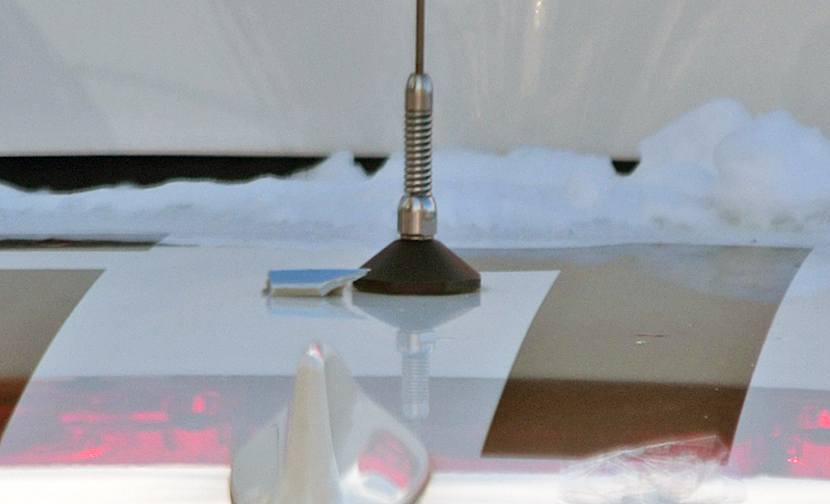 車内に見える円形の装置は、IPR仕様警察無線用のGPSアンテナ。