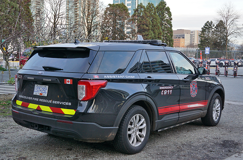 こちらは6代目フォード・エクスプローラー消防車両。黒色をベースと