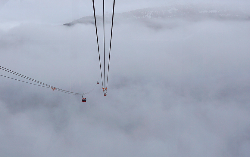 同士を結ぶ索道となっている。雲の上を行く構図もさることながら、