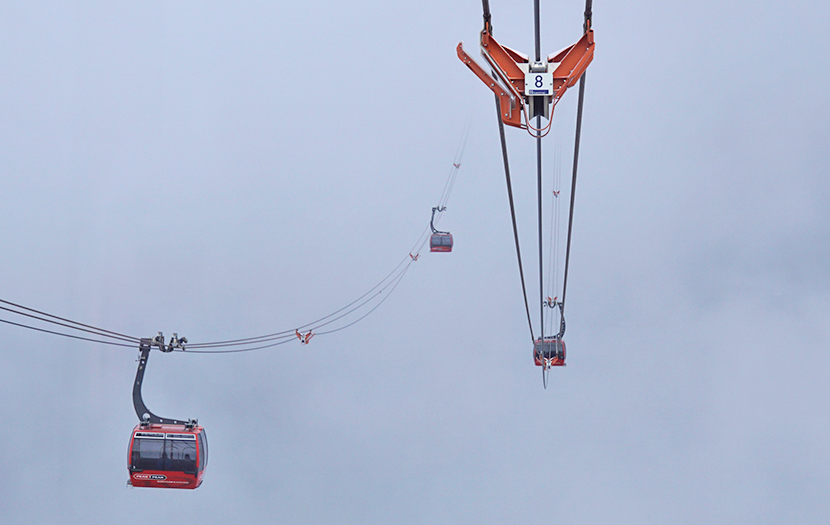 このロープウェイはピーク・トゥ・ピークと呼ばれるスーパーゴンドラ。