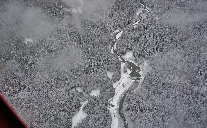 ダム施設が見える。これが航空機からの眺めではなく、ゴンドラから