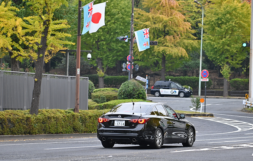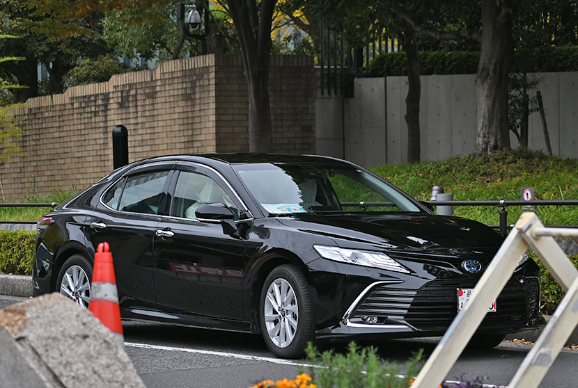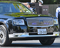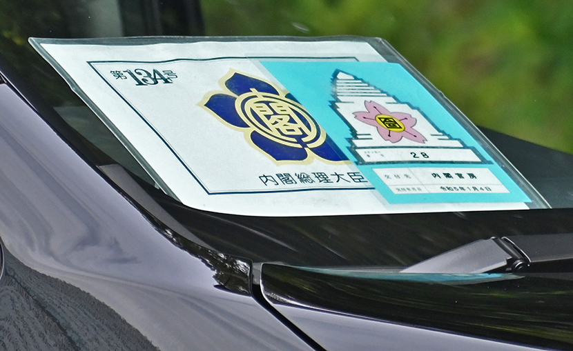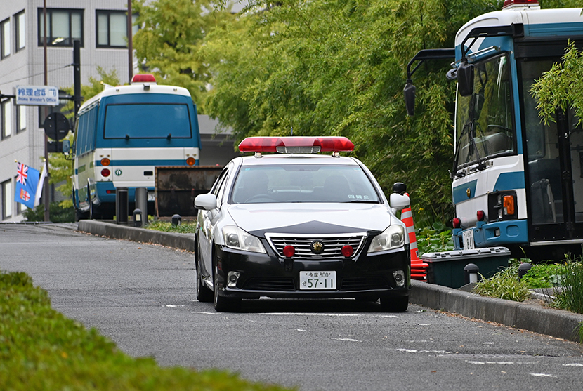 総理官邸付近での撮影。警戒にあたる200系クラウンパンダ。