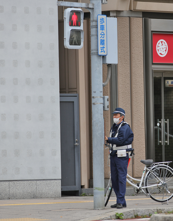 デモ隊進行を円滑にする為に、交差点には信号機を操作する警官が
