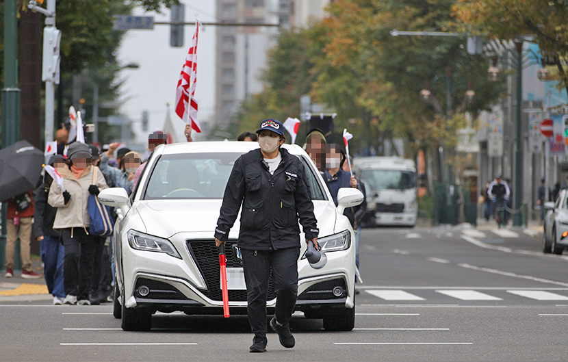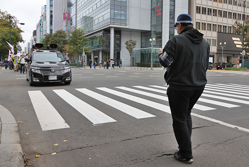 4代目スイフト捜査用覆面。デモ行進につかず離れずの距離感で