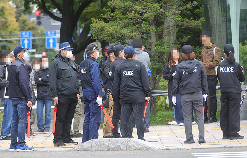 防ぐ為に警備の警官と車両が多数展開すると思いきや、