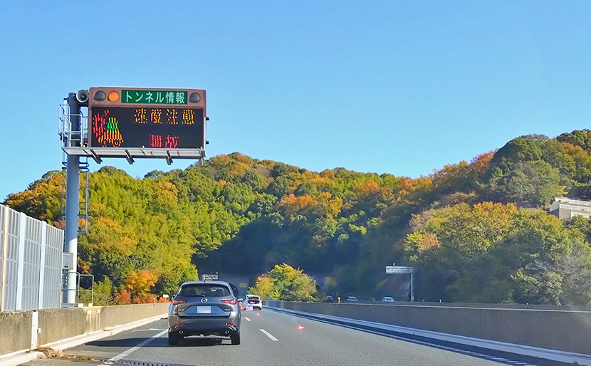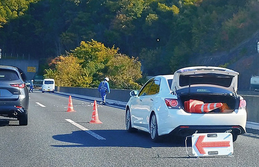 兵庫県山陽自動車道 龍野IC付近。上空の電光板が物語るように、事故