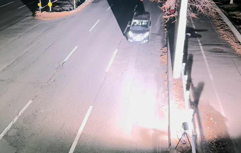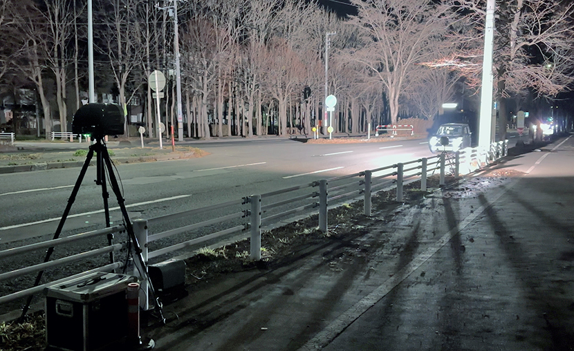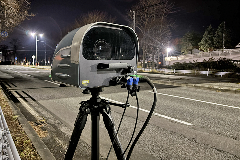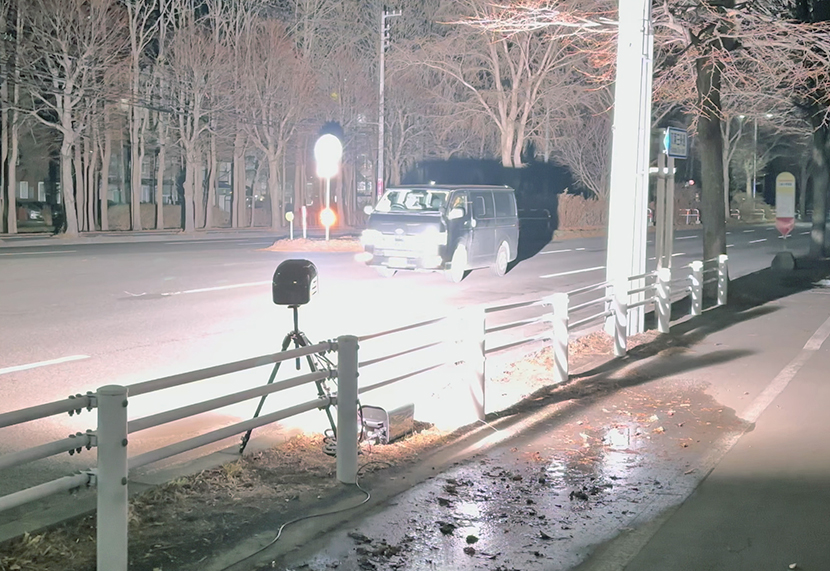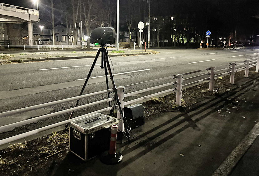 歩行者が跳ねられる重大事故現場に可搬式オービス投入 苫小牧市しらかば町