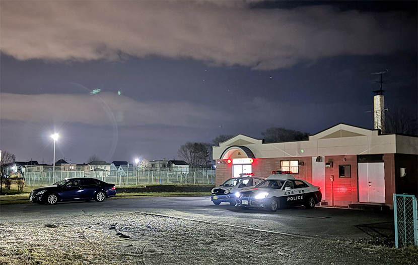 事が判る。記録写真を撮影する警官が確認できる。現場は札幌市