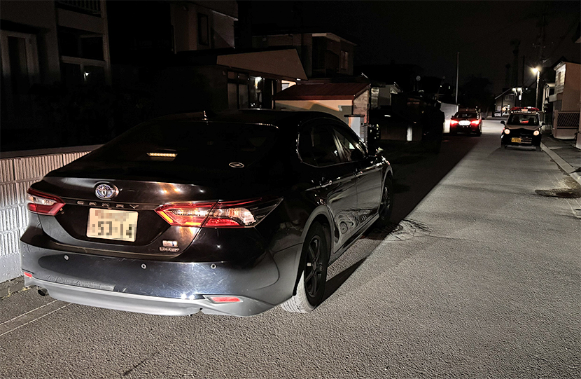 210系クラウンパンダ、交番パンダも臨場。現場はいわゆる閑静な