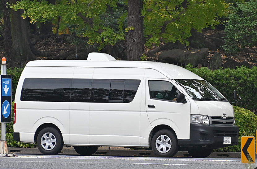 200系ハイエース多目的車(遺体搬送車)。現場が現場だけにホトケ
