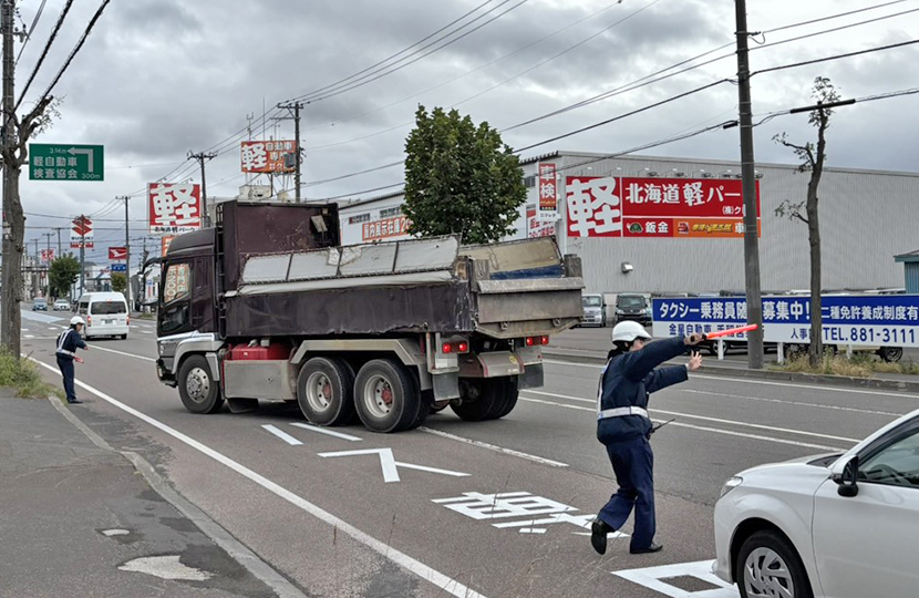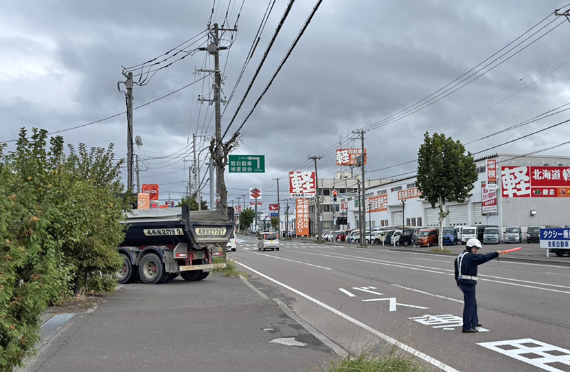 要件を済ませて本線へバックで戻る。警官の誘導サービス付き。