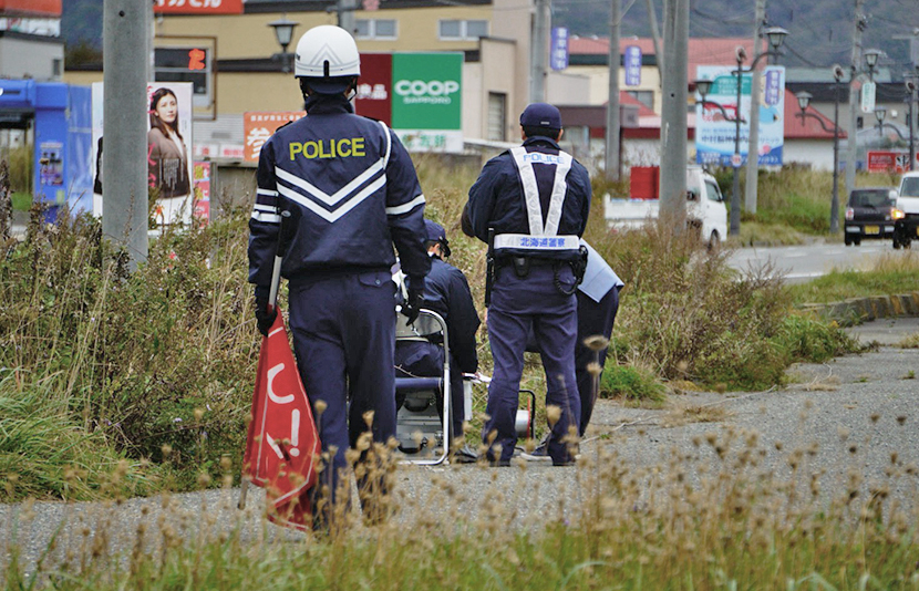 警官は歩道に居ました。現認係だね。現場は札幌市手稲区西宮の沢