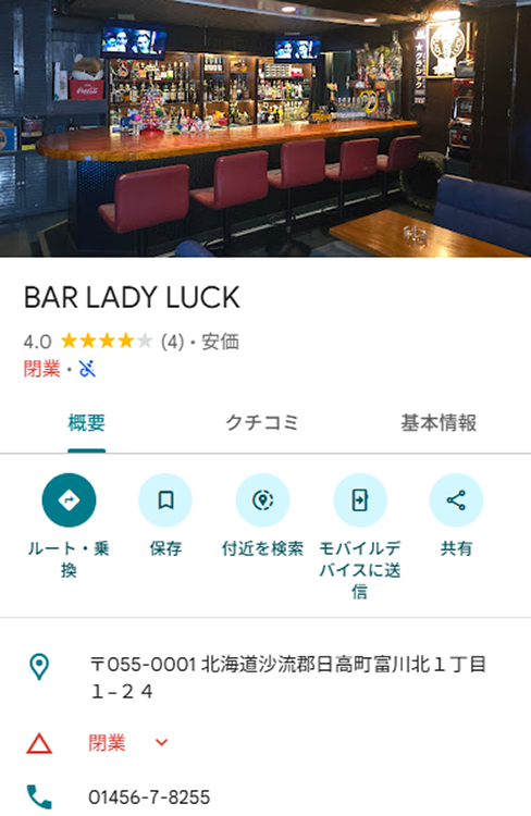 Googleマップで見る店の詳細。誰が操作したのか「閉店」になっている。