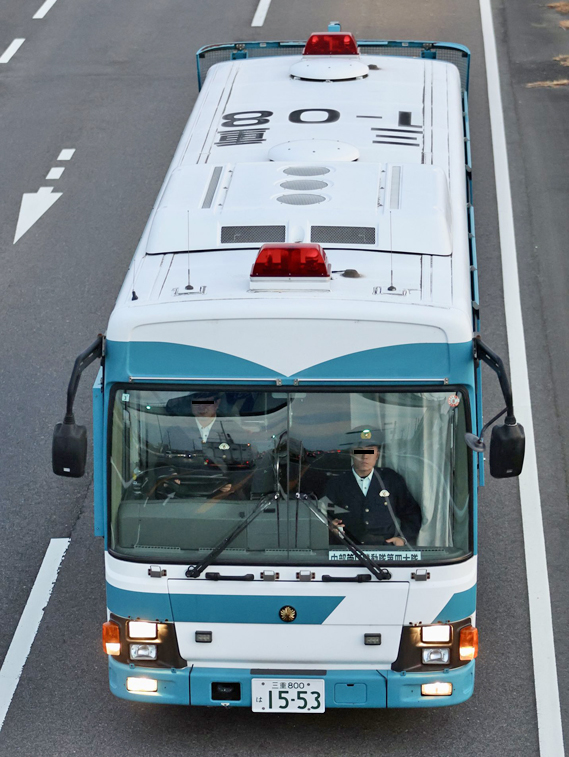 こちらは三重県警所属の大型人員輸送車。フロントのプレートには