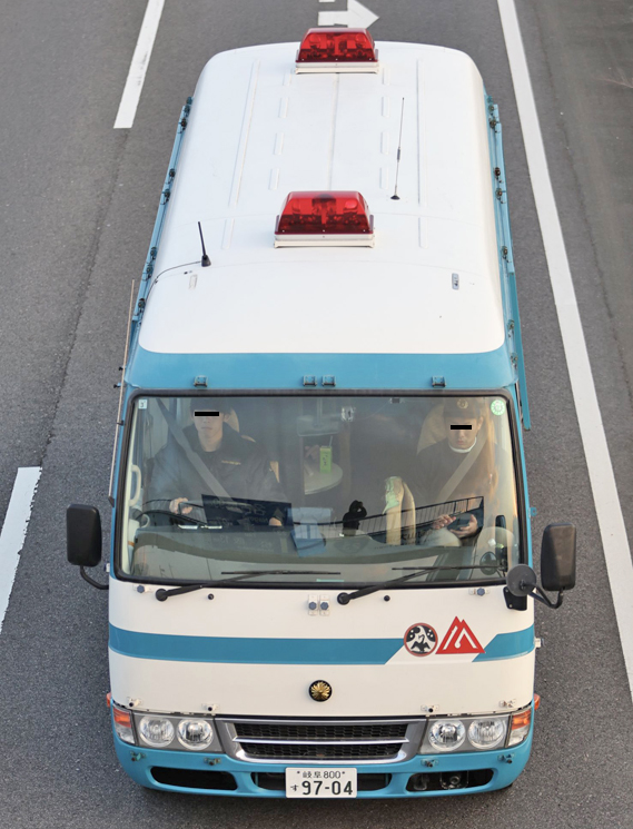 ナンバーは「品川309 む 30-00」 前面警光灯が点灯していないが、