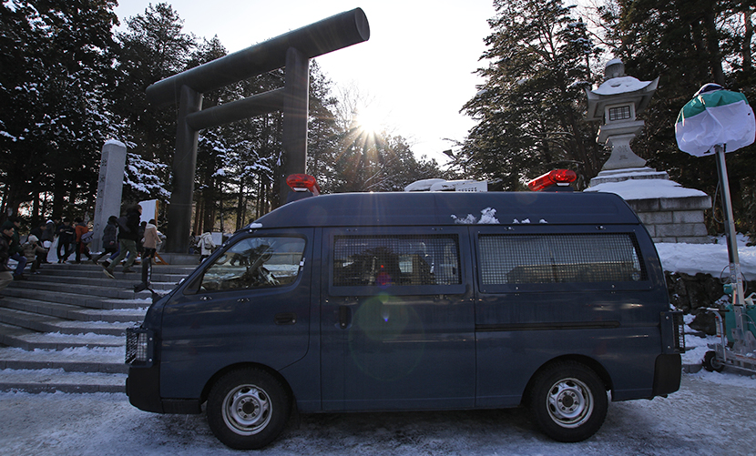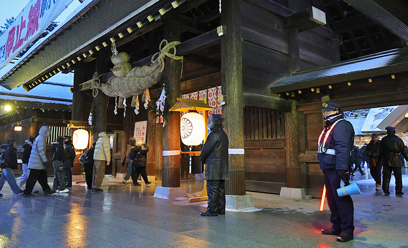毎年同鳥居の前には警察車両が配置されるのだが、今回撮影時は