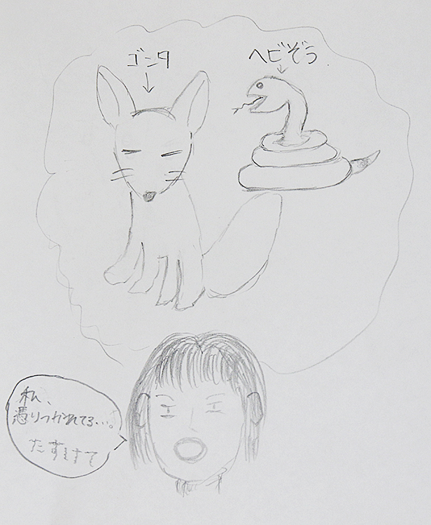 いる邪霊2体(ヘビ・キツネ)に出て行って欲しいゴーストスイーパー依頼。