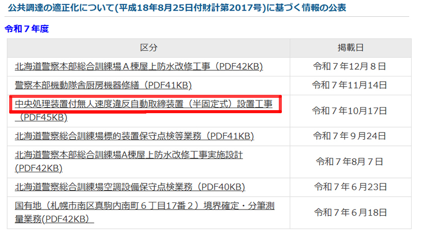 当サイト情報提供者の方より教えて頂いた道警調達公表情報。ありがとう