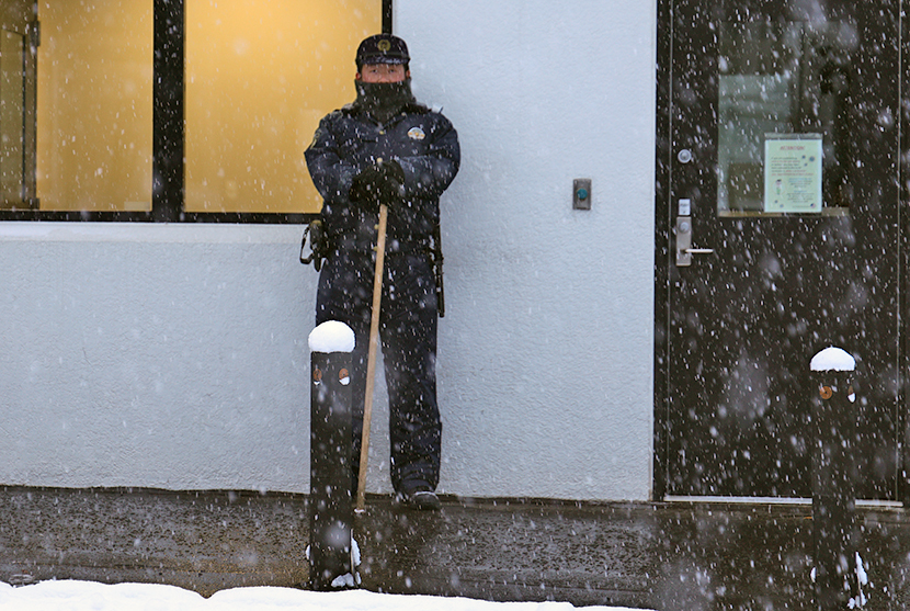 見張りの警官は撮影に気付くも微動だにせず。声掛けも一切無し。