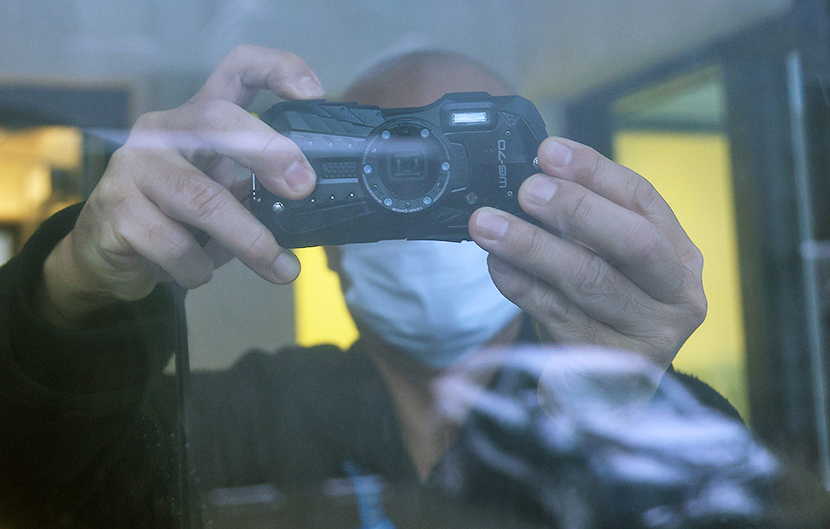 互いに仲良くフォトセッション。ガラスの反射を利用してこちらの姿も